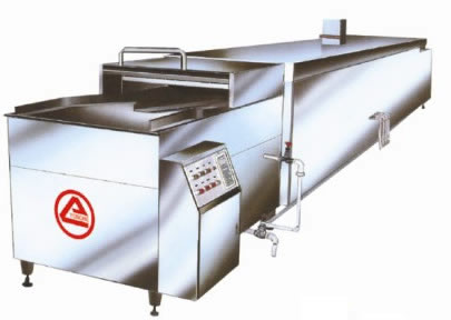 將瓶裝入周轉盤後經預熱噴頭衝洗,自動進入水槽之中(zhōng)蒸煮滅菌(配上超聲波(bō)效果(guǒ)更佳)。具有滅菌、清洗效果好,生產效率高,瓶子破碎率低等優點。經滅菌、烘幹後的產品瓶外觀光滑、清潔,表麵沒(méi)有水跡,不生黴菌,易保管,並便於貼簽牢固(gù),是口服液、糖(táng)漿生產線中不可(kě)缺(quē)少的滅菌、瓶外清洗設備。