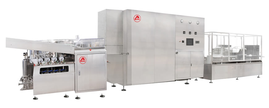 本機組符合“cGMP”要求,適用於安瓿的洗瓶(píng)、烘幹滅菌及灌裝封口,由QCL型立式超聲波清(qīng)洗機、MSH-B型熱風循環滅菌烘箱(xiāng)、AGF型自動安瓿灌封機組成聯動生產線。