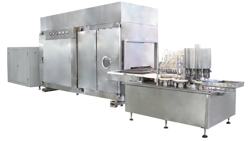 本機組符合“cGMP”要求,適用於口服液瓶的(de)清洗、烘幹滅菌及液體計(jì)量分裝。由CLQ-A型鏈式超聲波清洗機、MSH型高溫滅菌(jun1)隧道烘箱、YGZ型口服液劑灌封(fēng)機組合。