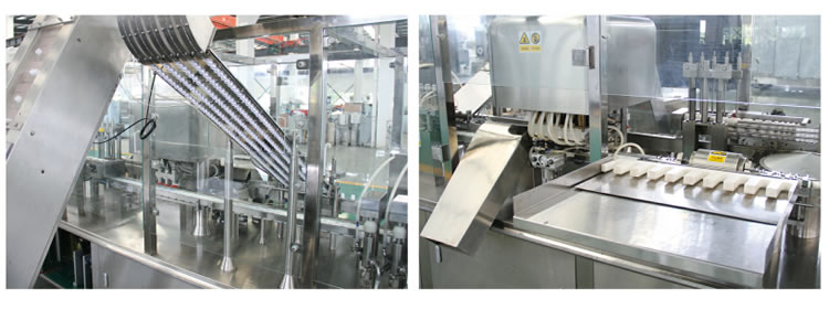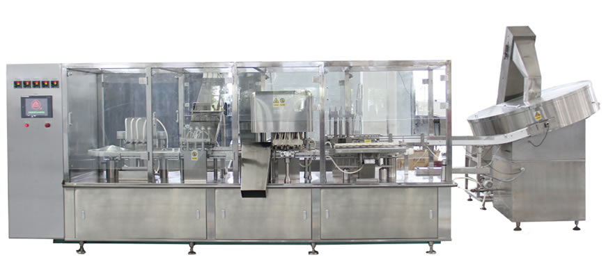 本機通過自動上瓶、底部灌裝、自動上蓋、熱熔式底部(bù)封口、氣動手指夾送出瓶等一係列特製工序(xù)完成灌封工作,可做為國內口服液灌裝生產理想設備。